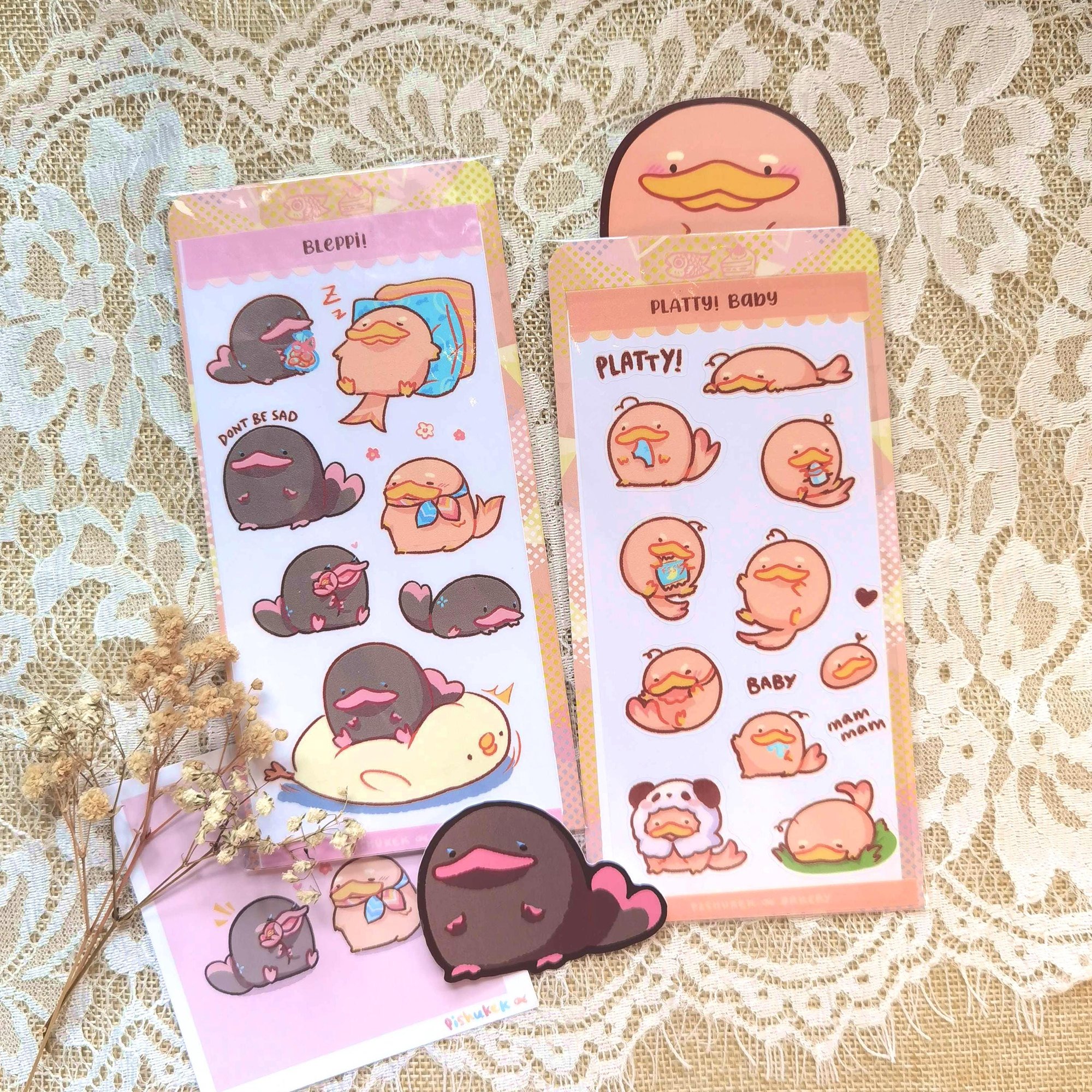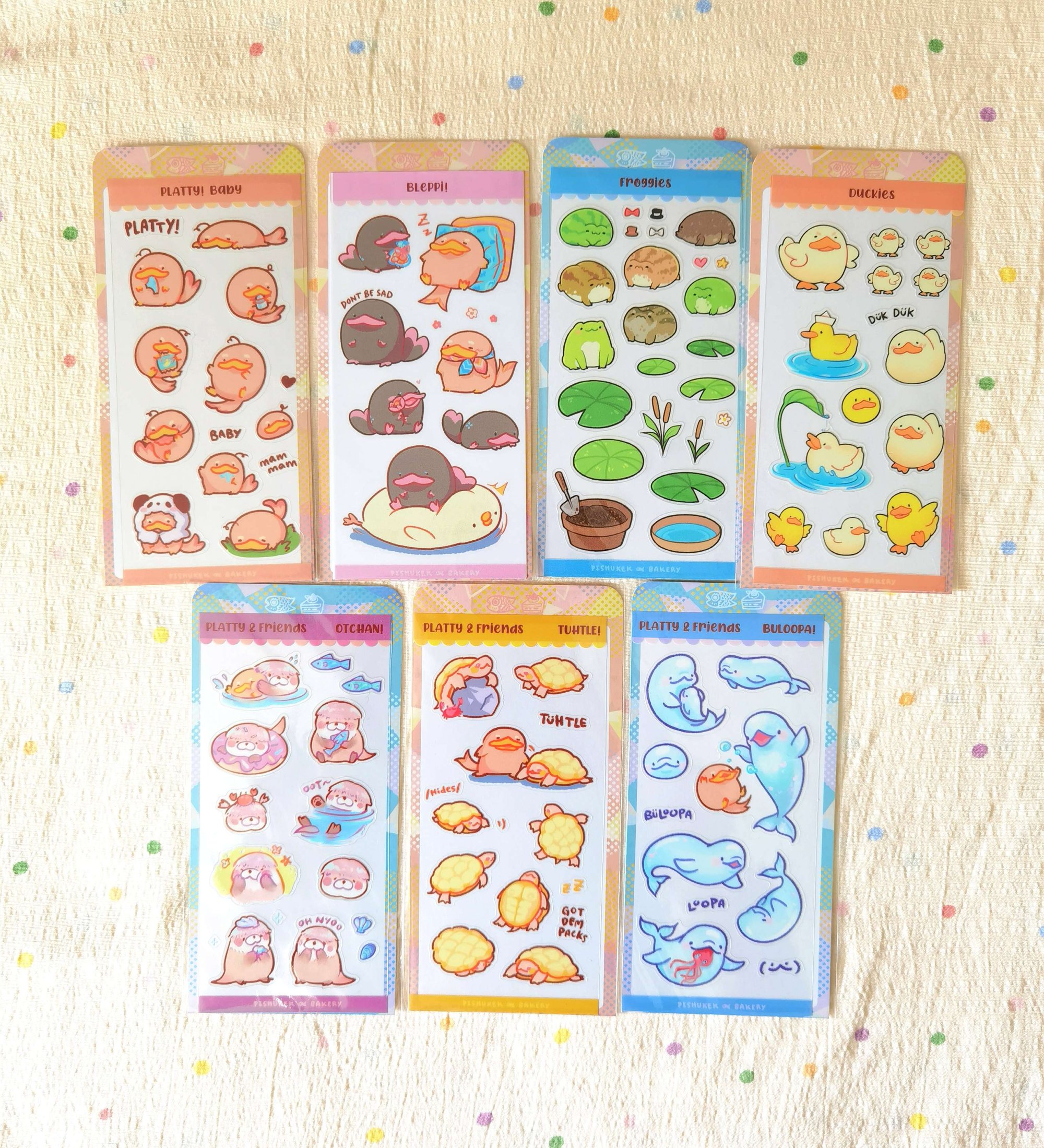 Platty & Friends! Platypus Otter Beluga Turtle Duck Frog Clear Stickers